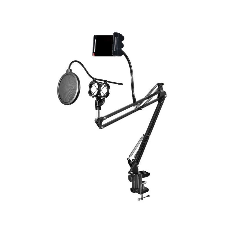استند متحرک استودیوی میکروفون موبایل و تبلت ریمکس مدل CK100 Pro ، یکی از جدیدترین و پرطرفدارترین محصولات این شرکت است.این محصول مدل تقویت شده Ck100 معمولی این شرکت بوده و دارای فنرهای تقویت شده و از جنس فلز آلومنیوم و ABS می باشد.این استند ایده آل برای استودیو پخش رادیویی ، استودیو پخش صدا ، لایوهای زنده شبکه های احتماعی ،کنفرانس ها ،صحنه ها ، و ایستگاه های تلویزیونی،لایو استریم ها،ضبط صدای خانگی و غیره می باشد. دارای پایه نگهدارنده گوشی و تبلت بوده که از 11 تا 18 سانتی متر توایی نگهداری انواع گوشی و بالاخص تبلت را دارد و توانایی چرخش 36.0 درجه بطور کامل را دارد.پایه بازویی قیچی مجهز به فنر فوق العاده قوی است تا بتواند وزن زیادی را تحمل کند.دارای یک نویز گیر یا پاپ شیلد بوده که کاملا در برابر قطرات بخار دهان ضد باکتریال می باشد. این هلدر بصورت افقی یا عمودی بر روی انواع میزه کتابخانه ها تخت خواب و...براحتی نصب میشود و نصب راحتی داشته و براحتی نیز قابل حمل و نقل می باشد.این پایه استودیویی جدید برخلاف مدلهای قبلی توانایی نگهداری انواع میکروفونها را دارد. پس از متصل کردن قطعات ، شما دارای یک استند با قابلیت نگهداری میکروفون ، موبایل یا تبلت و یک نویزگیر میکروفون خواهید بود که میتوانید پایه استند مورد نظر را نیز به میزخود از طریق گیره تعبه شده در آن ، متصل نمایید. این محصول مناسب کلیه کسانی است که می خواهند با هزینه کم یک استودیوی ضبط کوچک اما حرفه ای داشته باشند.جهت آسودگی خیال شما از خرید این محصول میتوانید با بارکد خوان گوشی خود اوریجینال بودن آنرا از طریق وب سایت رسمی شرکت ریمکس اصالت سنجی نمایید.