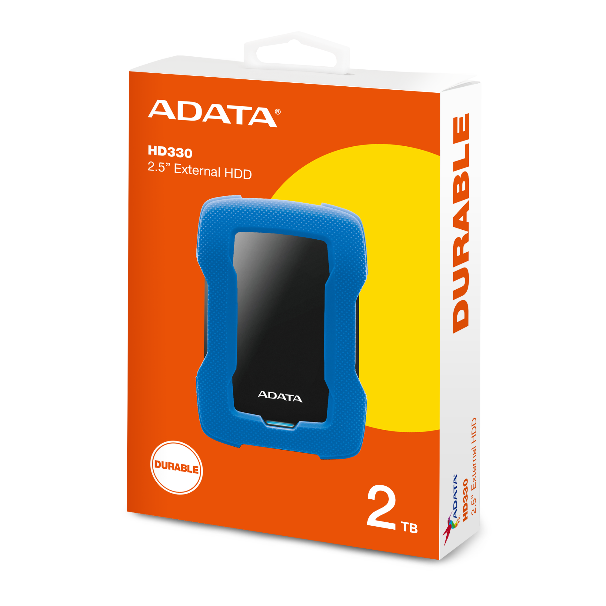 هارد «HD330» با ظرفیت یک ترابایت محصولی مقاوم از شرکت «ای دیتا» (ADATA) است که از طریق رابط USB3.1 به کامپیوتر متصل میشود. بهره بردن از رابط USB3.1 در این محصول باعث شده که بتواند اطلاعات را با سرعت زیاد انتقال دهد. این محصول بدنهای مستحکم با پوشش سیلیکونی دارد که قادر است در برابر سقوط و ضربات روزمره مقاومت کند. وزن این هارد 189.8 گرم است و به راحتی میتوان آن را در کیف لپتاپ خود قرار داده و همیشه با خود همراه داشت. نکتهای که باید به آن توجه کنید این است که برای اتصال این هارد از طریق رابط USB 2.0 به دو درگاه USB نیاز خواهید داشت؛ برای این کار باید از کابل Yشکل USB استفاده کنید. پشتیبانی از فرآیند رمزنگاری AES باعث میشود که از امنیت اطلاعات خود مطمئن شوید. هارد HD330 با سیستمعاملهای مختلف از جمله نسخههای گوناگون سیستمعامل ویندوز و مک به خوبی سازگار است. این محصول در سه رنگ آبی، مشکی و قرمز روانه بازار شده است.