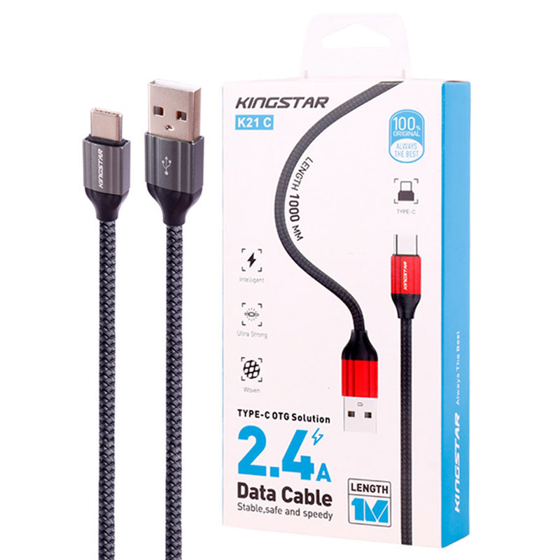 کابل K21C USB «کینگ استار» 1 متر طول دارد و رشتههای مسی آن با استفاده از روکشی پوشانده شدهاند. کانکتورهای بهکار رفته در این کابل بسیار مقاوم می باشند. کابل مدل «K21C» از تولیدات شرکت «کینگ استار» است که با کیفیت ساخت بالا روانه بازار شده است. در یک طرف این محصول کانکتور USB و در طرف دیگر آن کانکتور USB-C وجود دارد. کانکتور USB-C که با نام USB Type-C هم شناخته میشود، امروزه در بسیاری از گوشیهای هوشمند و لپتاپها مشاهده میشود. این کابل در برابر گره خوردن و درهم پیچیدن مقاوم است.